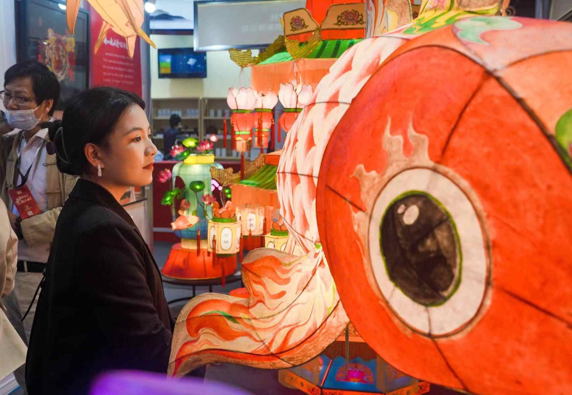 粤港澳大湾区工艺美术博览会暨湾区文创节现场,传统非遗受年轻人关注(羊城晚报全媒体记者 贺全胜 摄影)