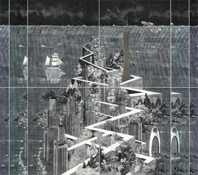 然而,若仅有“承”的托举,艺术或许将囿于精美的技术复制。徐那的卓越,更在于她明晰“继”的创造性转化。“继”,其字形如丝线连绵不绝,本意是延续、接续,并隐含了连接之后的新生与拓展。徐那所“继”的,是中华民族文化浩瀚而深邃的文化魂魄与视觉基因,并在当代语境下赋予其新的形式与生命。她的《都市霓虹》(2021年)正是“继”之精神的生动体现。在这幅作品中,徐那并未拘泥于传统题材,而是将木口木刻的精微语言转向对现代都市的凝视。她以冷静而密集的刀痕,编织出错综的电路、流动的光影与疏离的建筑,将都市的喧嚣与璀璨转化为一种具有晶体质感的视觉秩序。传统版画的黑白语言在这里被激活,用以诠释当代生活的速度与光影,实现了古老技艺与当代视觉经验的成功嫁接。这种“继”,是让文化血脉在当代艺术的躯体中重新搏动,是让古老的集体记忆与技艺找到了一种严肃、深刻且极具个人风格的当代表达。