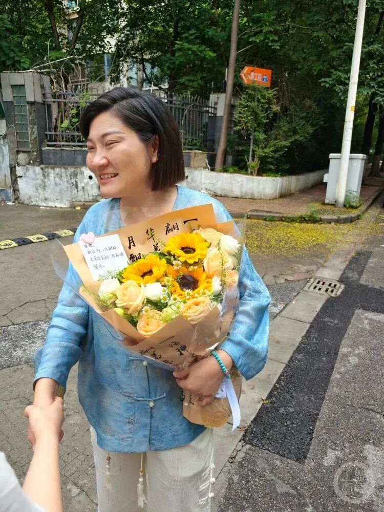 庭审结束后网友送上鲜花。图源:上游新闻
