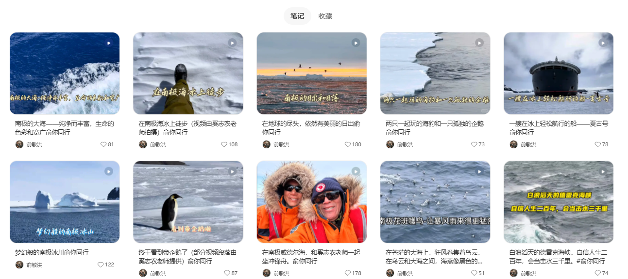 俞敏洪在某社交平台上连发数条南极游视频。图源:网络